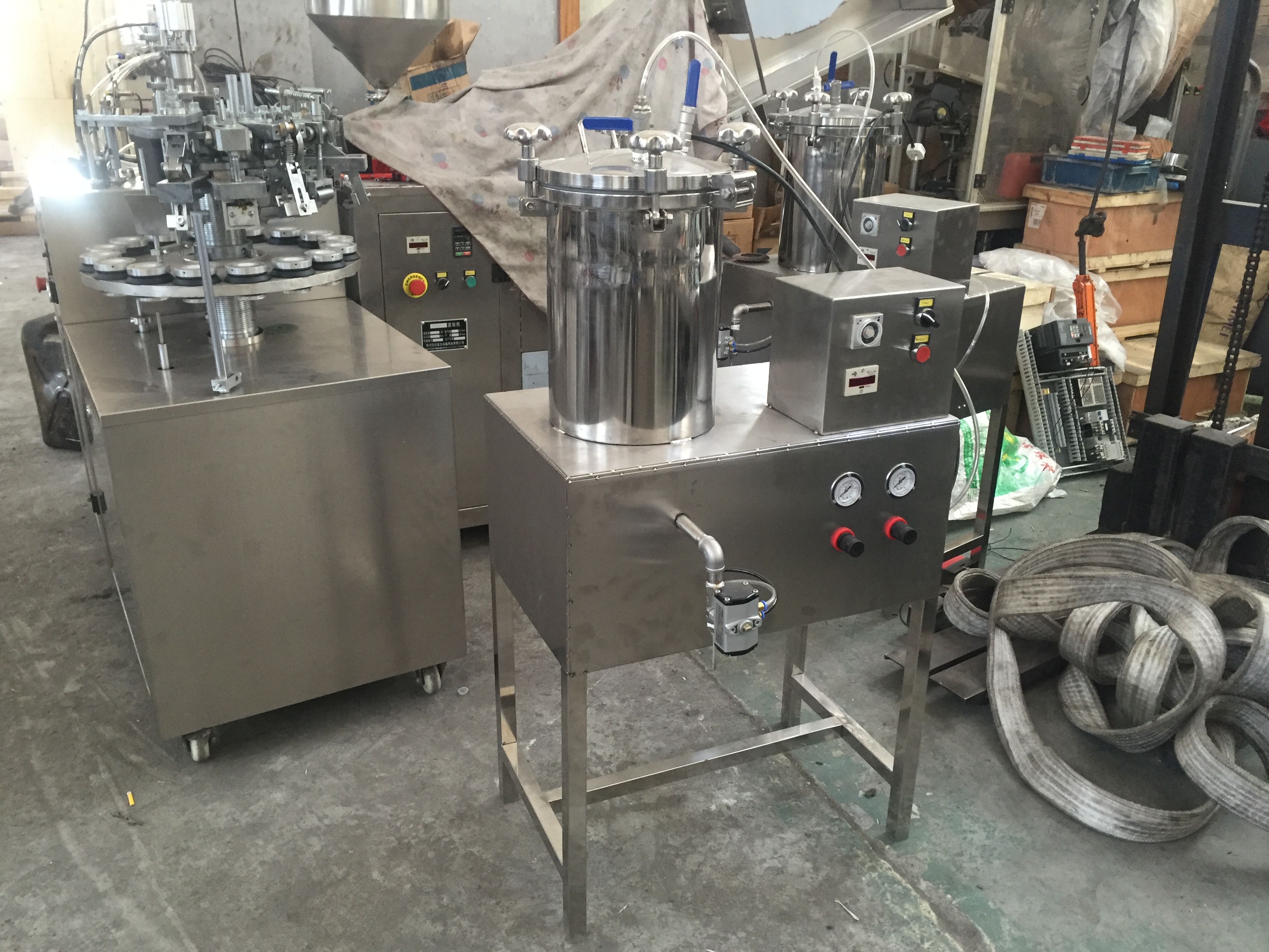 This machine, designed for paste filling design of large cosmetics viscosity, suitable for filling the mascara cosmetics raw materials. By using automatic, dynamic and single action three modes of operation.