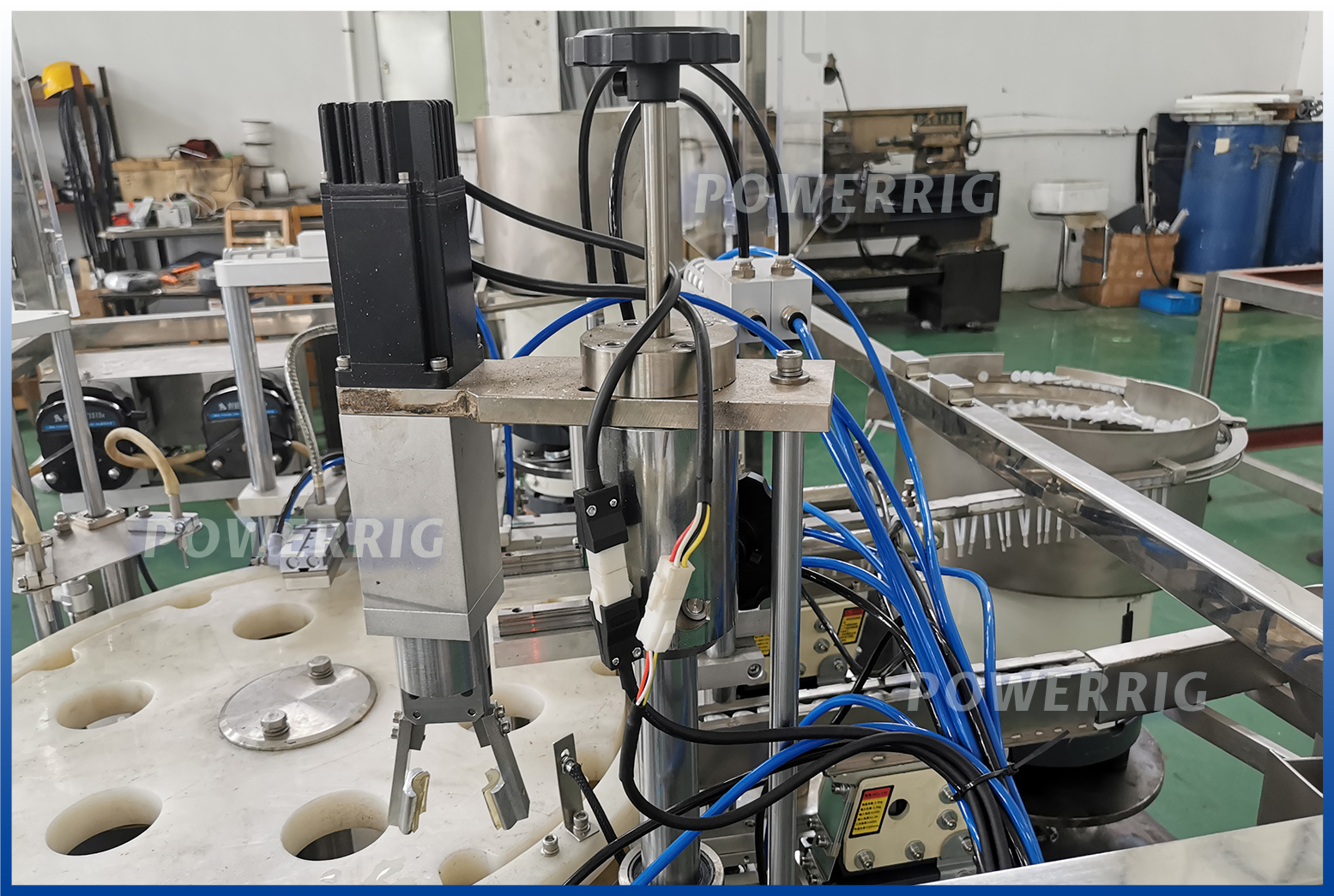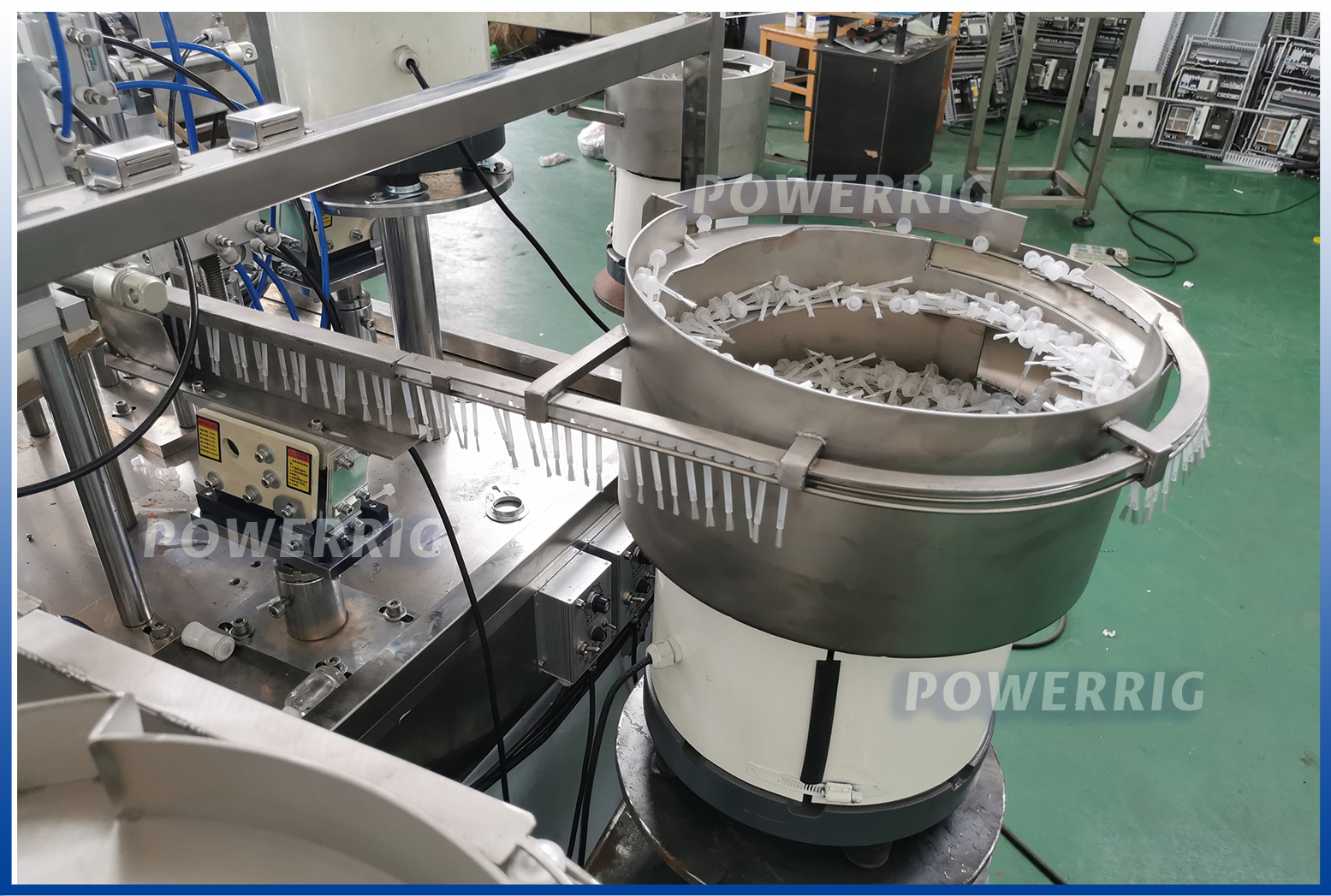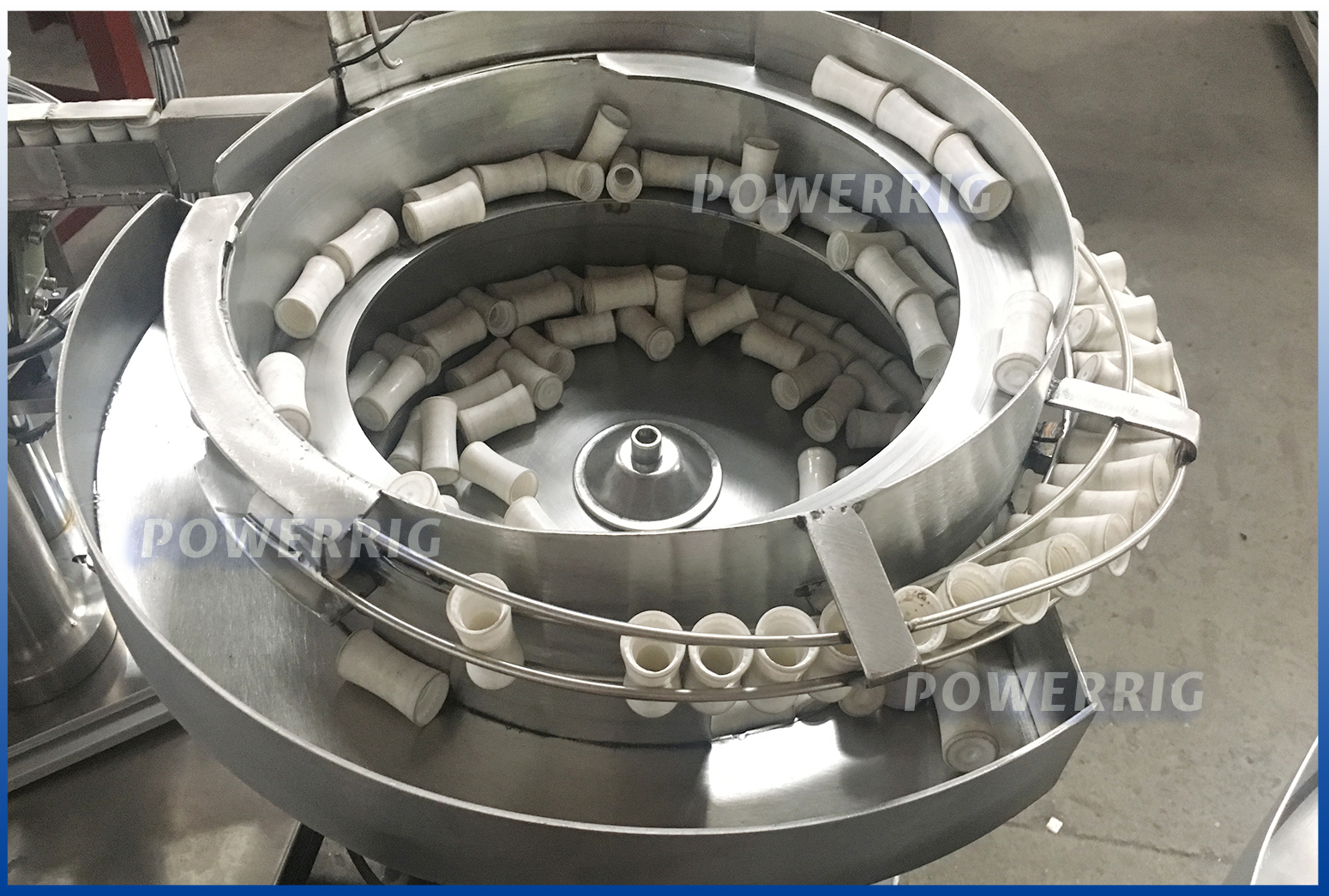 4. Automatic filling and three vibrating bowl uploading plug, brush and cap