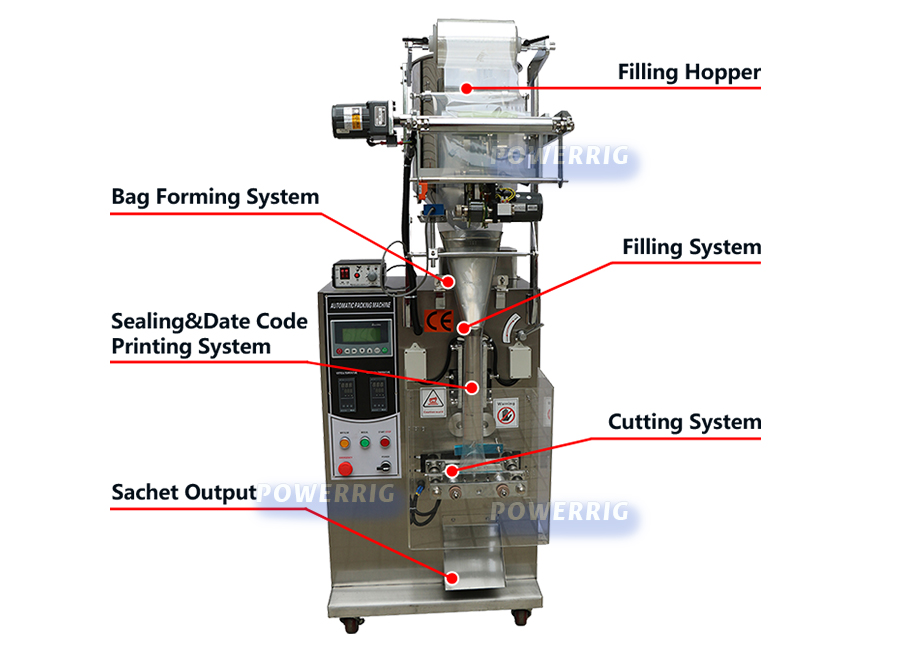 1. This machine can finish : forming bag--measuring--material filling—sealing—counting—date code printing, all the work automatically;
